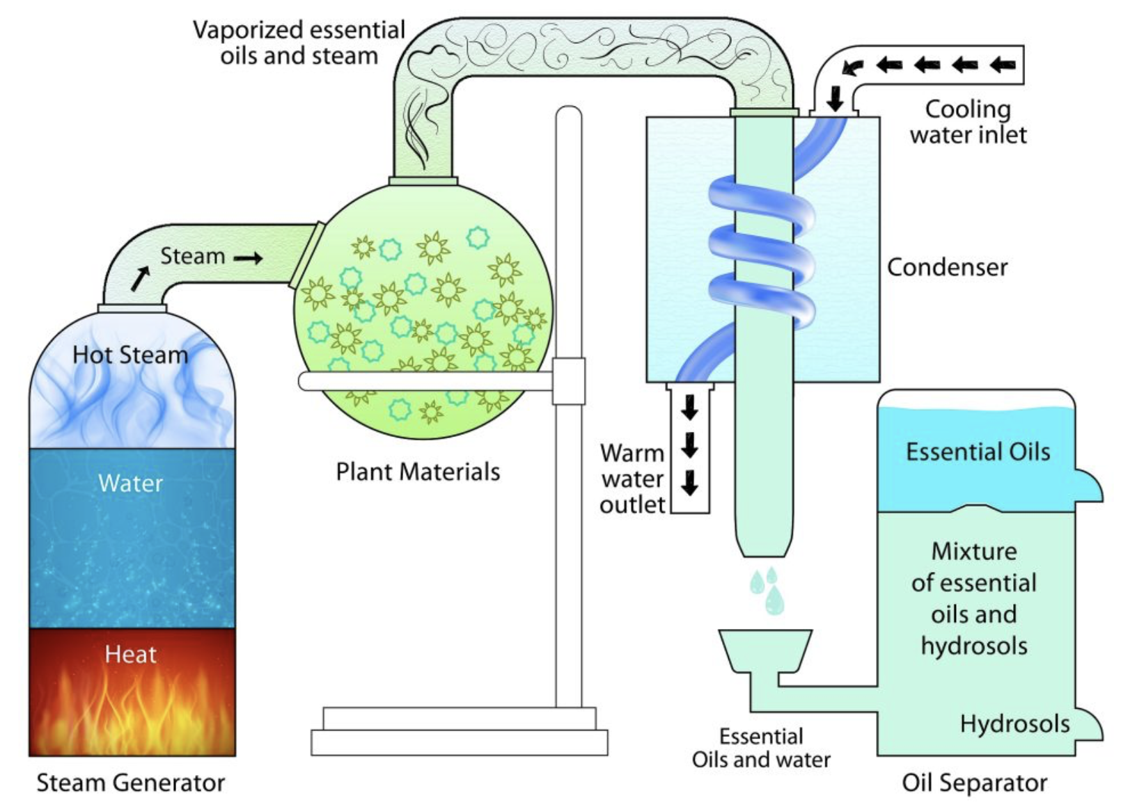 - Volatile chemical compounds originally mixed with water are extracted to vapour phase