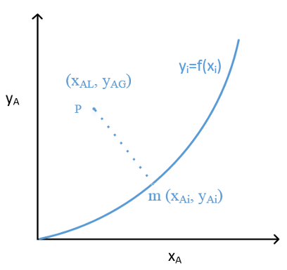 The two ends of the operating line \((x_1, y_1)\) and \((x_2, y_2)\) follow: