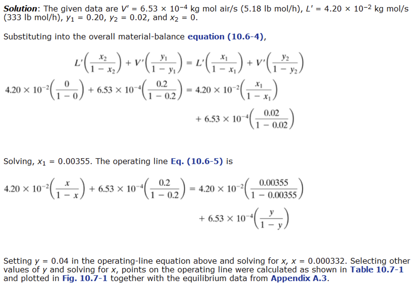- At each point on the operating line: determine \((x,y)\)