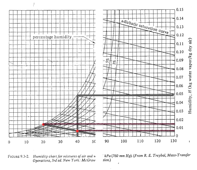 Determine using the psychrometric chart for a humid air at \(40^\circ\) that has a wet-bulb temperature of 20 \(^\circ\):