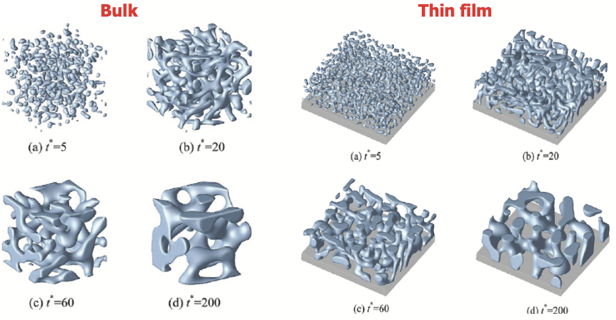 - In spinodal decomposition, surface energy acts as “stablization” for pattern formation!